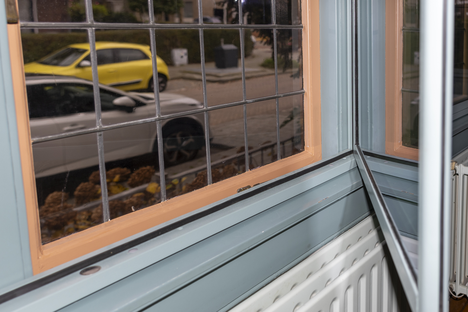 Wij hadden al achterzetramen, maar die zaten in alu-profiel vastgeschroefd in het raamkozijn. Om schoon te maken dus heel lastig: alles los halen en eruit tillen. Dit systeem werkt met vrijwel onzichtbare scharnieren en kunnen we dus heel simpel opendraaien.