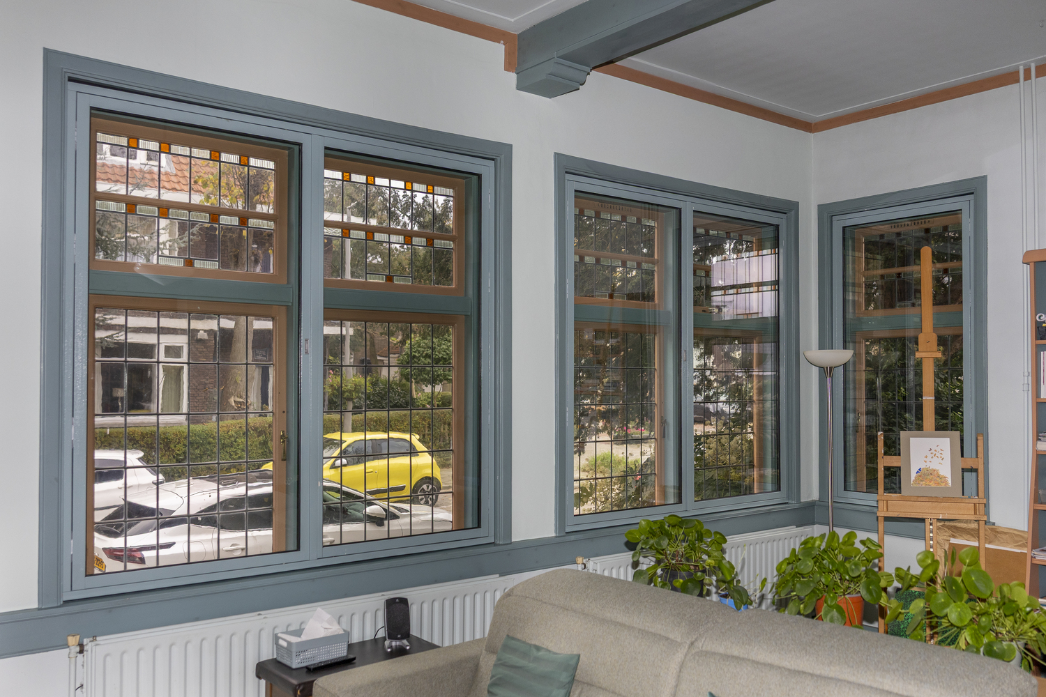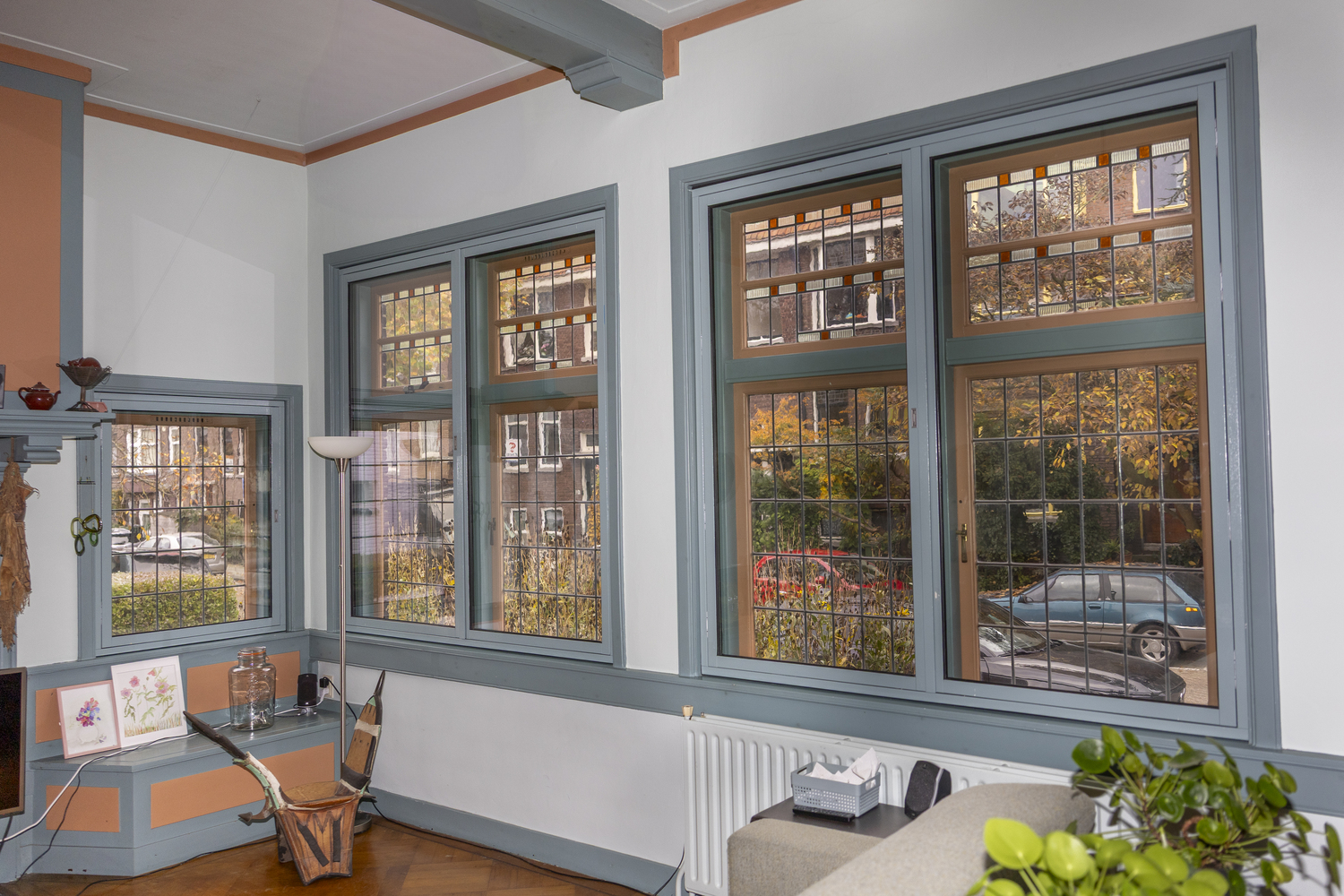 Voor deze voormalige burgemeesterswoning in Rotterdam hebben wij hoogwaardige, op kleur vervaardigde achterzetramen geleverd, volledig afgestemd op de karakteristieke stijl van de woning. De bewoners wilden het originele glas-in-lood behouden en tegelijkertijd hun ramen beter isoleren.